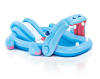 Игровой центр Intex Бегемот совмещает в себе игровой развлекательный комплекс, вместе с водным аттракционом. Надувной детский центр выполнен в виде яркого голубого Бегемота с небольшой водной горкой и двигающегося навеса, в виде раскрытой пасти животного. Если подключить к  игровому центру садовый шланг получится мини-аквапарк с брызгами, что позволит детям весело и с пользой проводить жаркие летние деньки, вместе со своими друзьями, плескаясь в воде и скатываясь с горки.